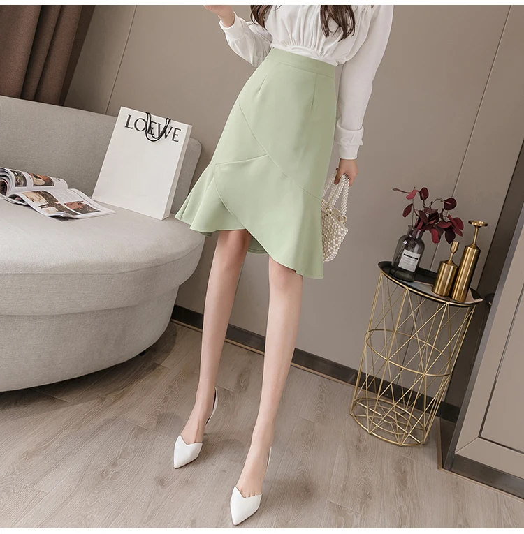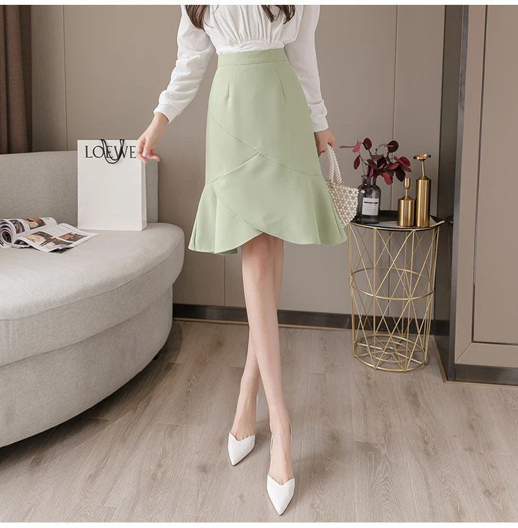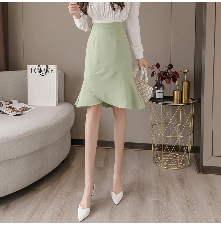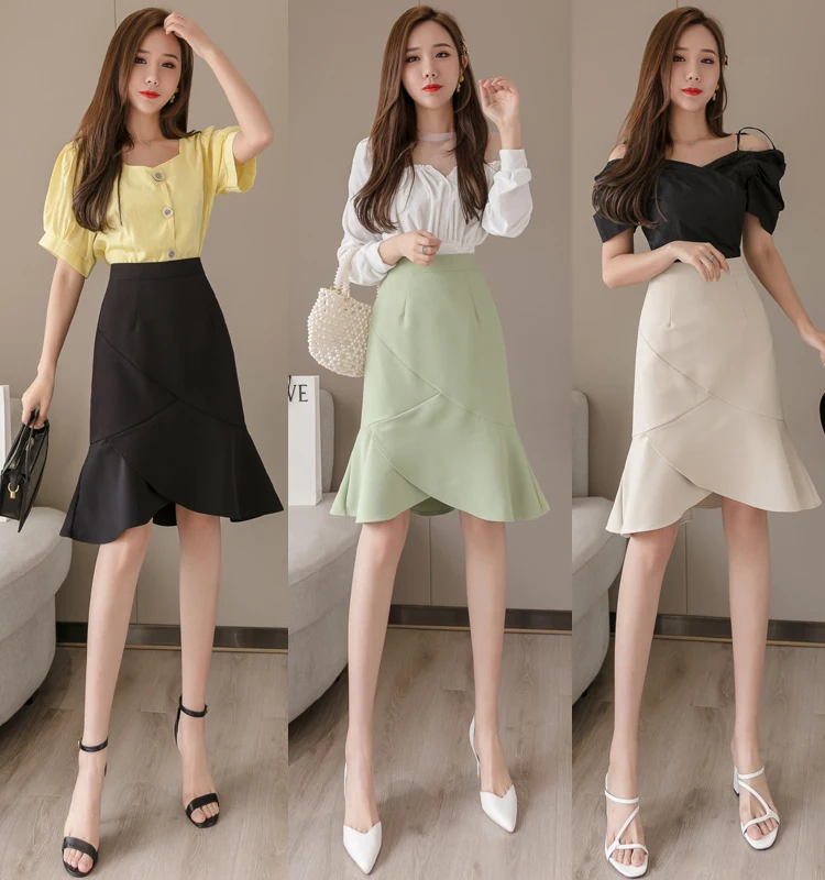 High Waist Mermaid Women Summer Korean Style All-match Knee-length Office Lady Elegant Skirt