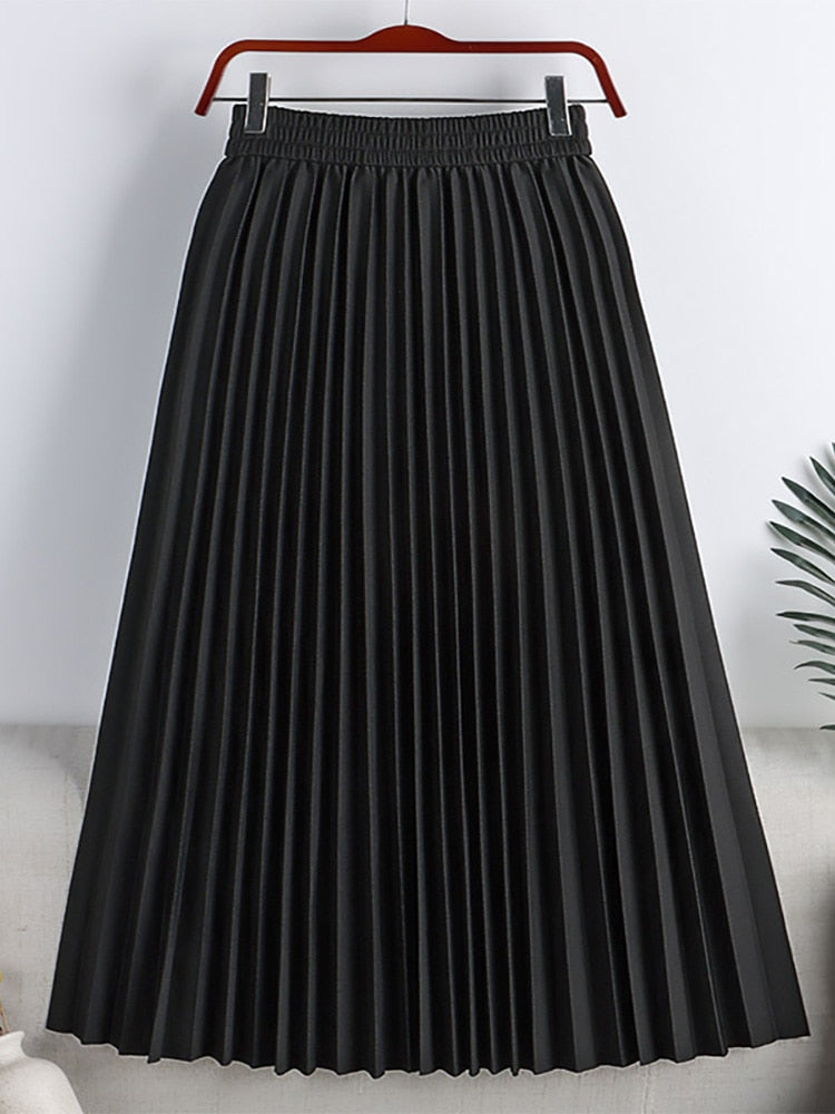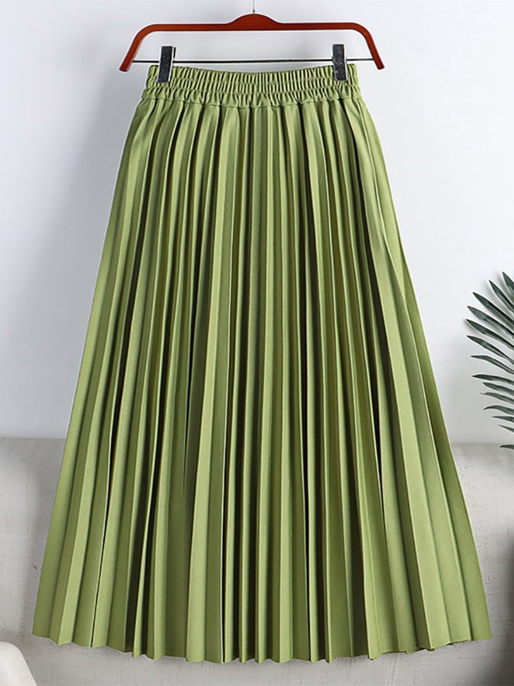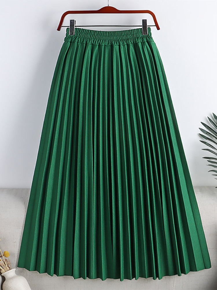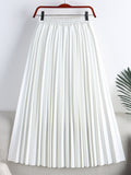 Women Elegant Elastic High Waist Basic Pleated Skirt Solid Casual A Line Summer Midi Skirt