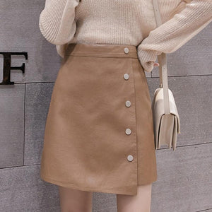 Women High Waist Mini Skirts Spring Korean Style Single-breasted All-match Ladies Elegant Short Skirt