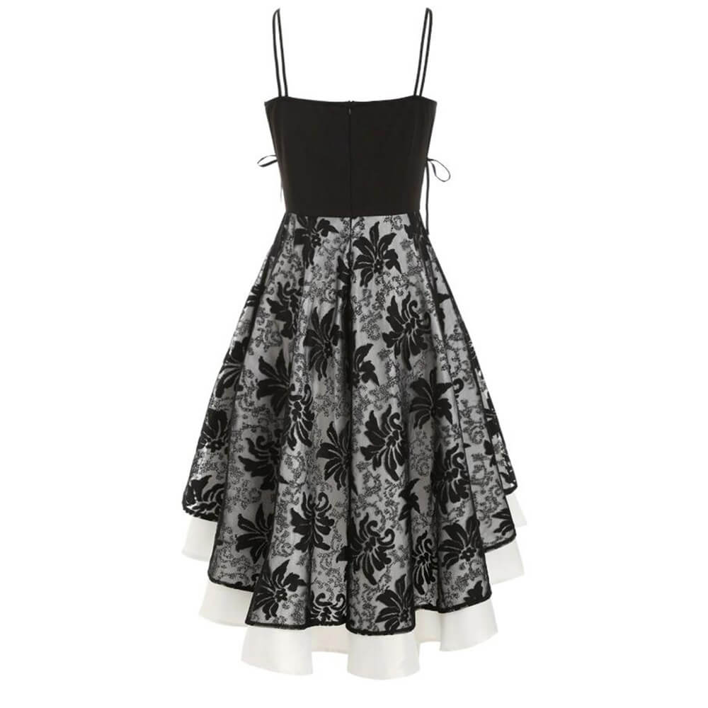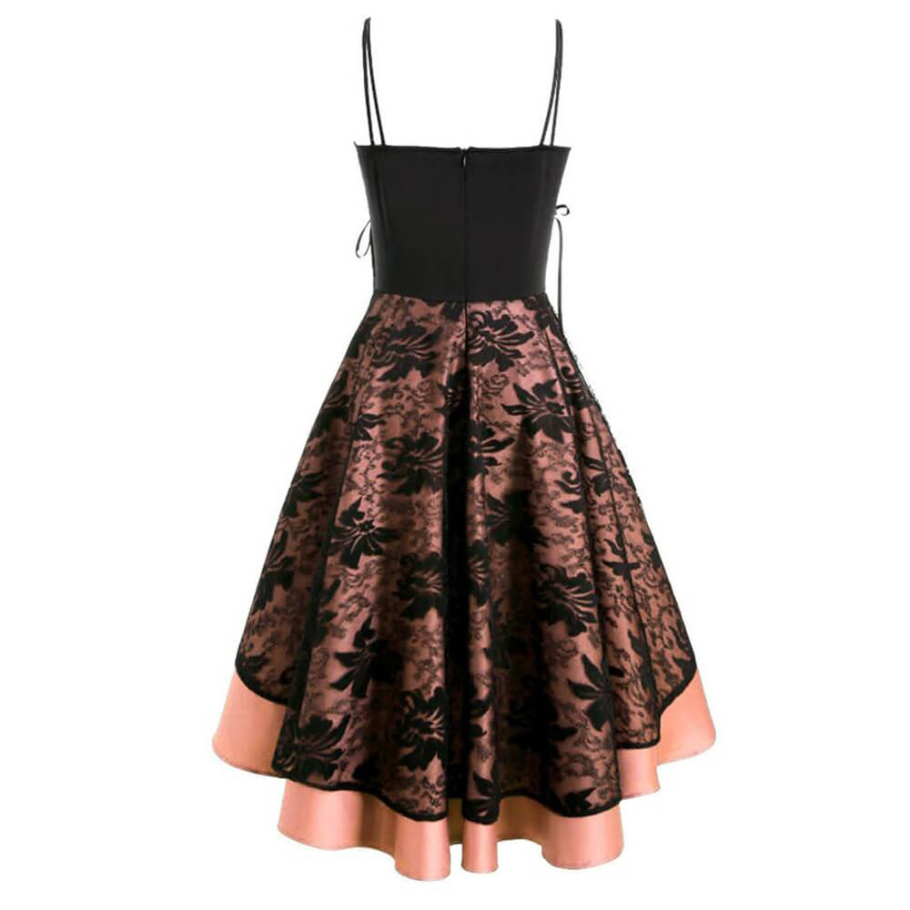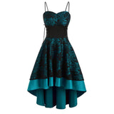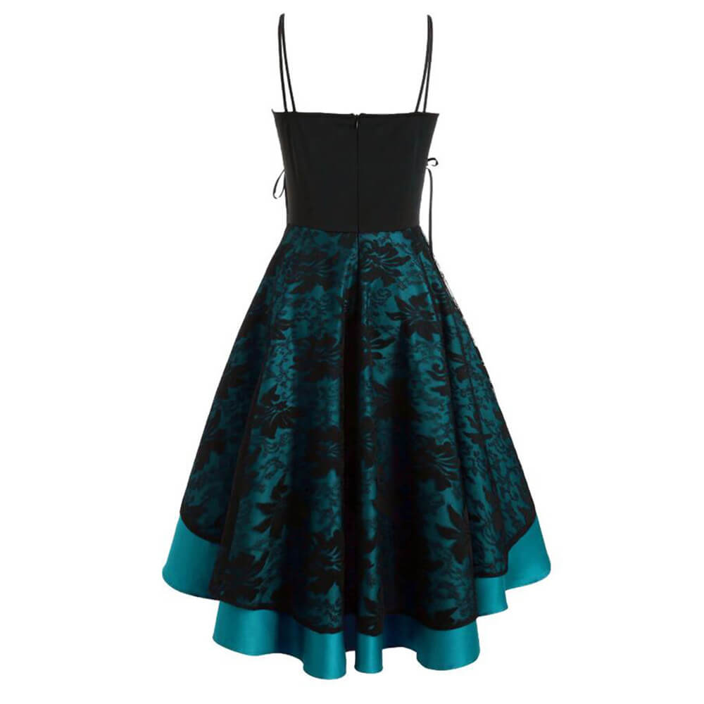 A sweet dress in fabulous 1950s vintage appeal fresh from Retro Stage. The dress is delightful in 1950s vintage appeal with lace throughout lake blue and wine red backdrop, a pinpoint of vintage charm! Set to put a feminine floral spring in your step, the glorious Evening Garden dress is this season's must-have vintage dress from Dancing Days.