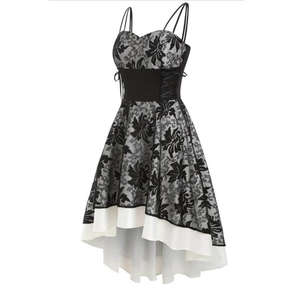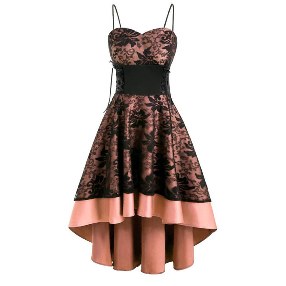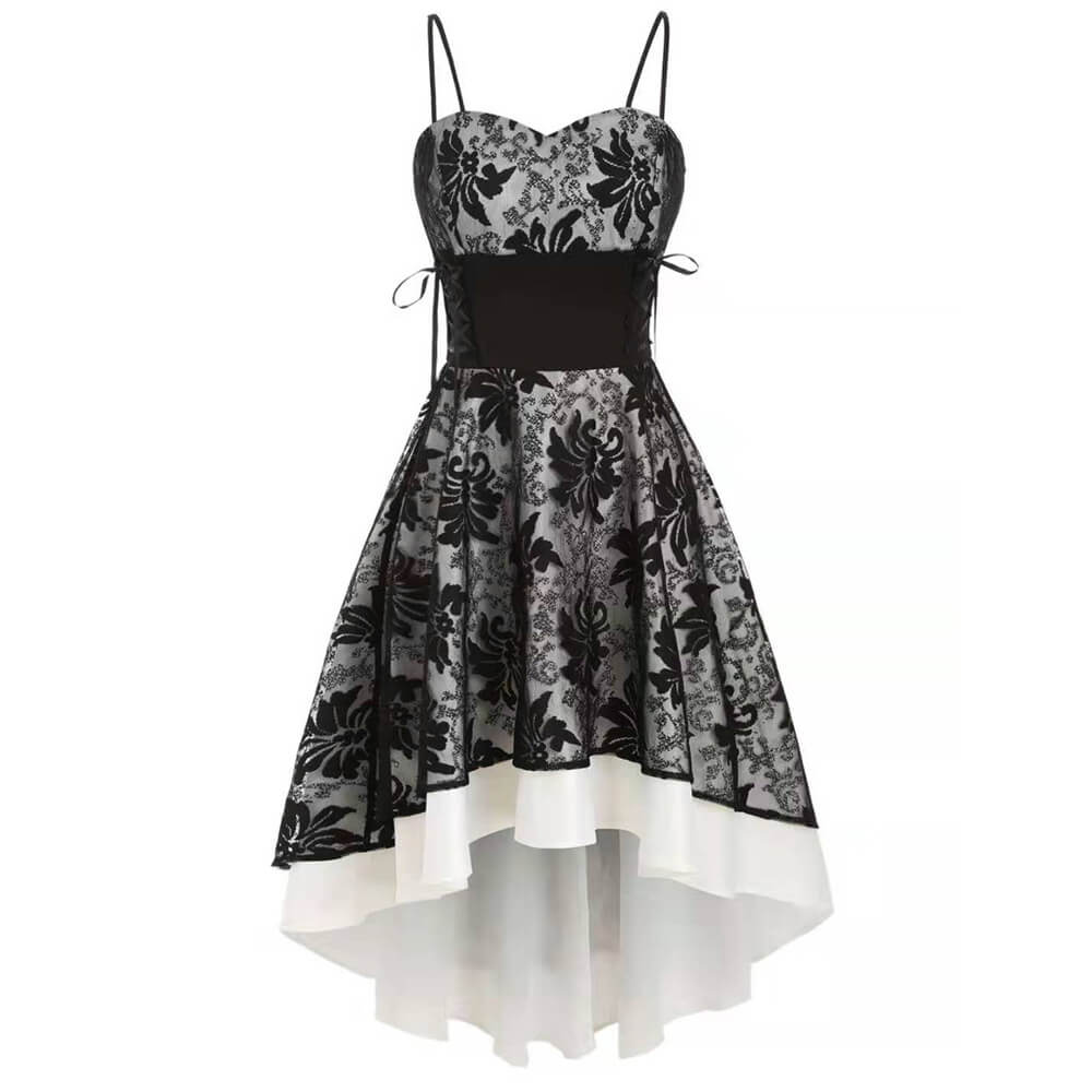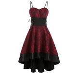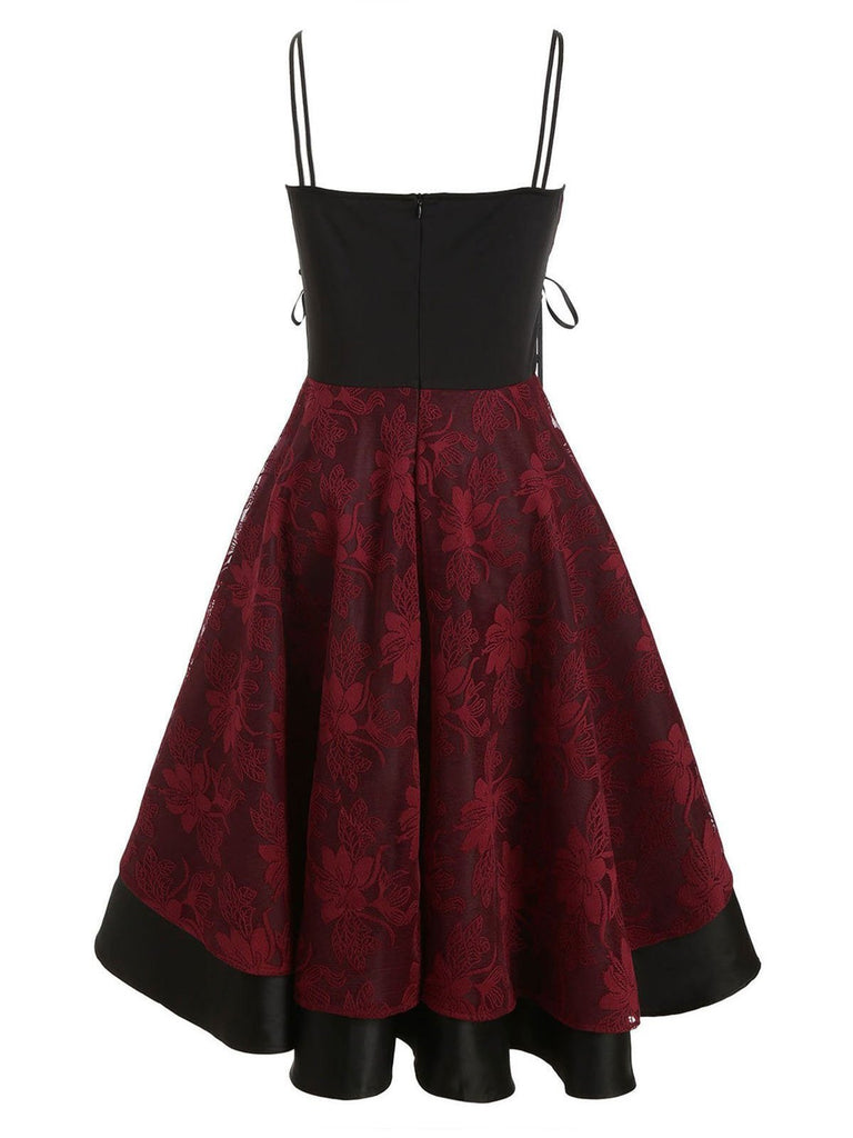 A sweet dress in fabulous 1950s vintage appeal fresh from Retro Stage. The dress is delightful in 1950s vintage appeal with lace throughout lake blue and wine red backdrop, a pinpoint of vintage charm! Set to put a feminine floral spring in your step, the glorious Evening Garden dress is this season's must-have vintage dress from Dancing Days.