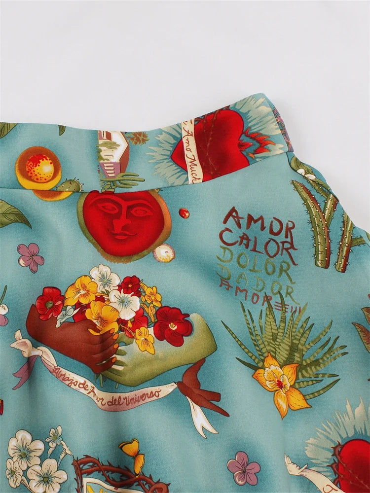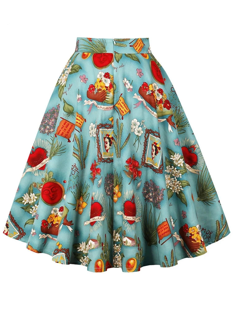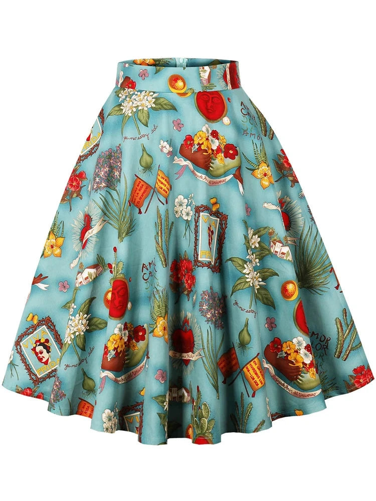 1950s Style Vintage Swing Rockabilly Dress Floral Print Cosplay Costume Elegant High Waist A Line Skater Ladies Runway Skirts
