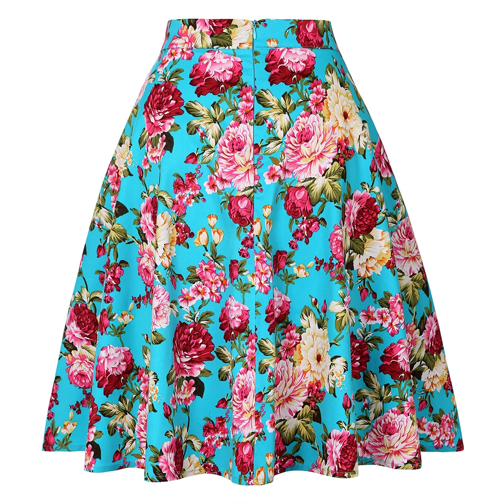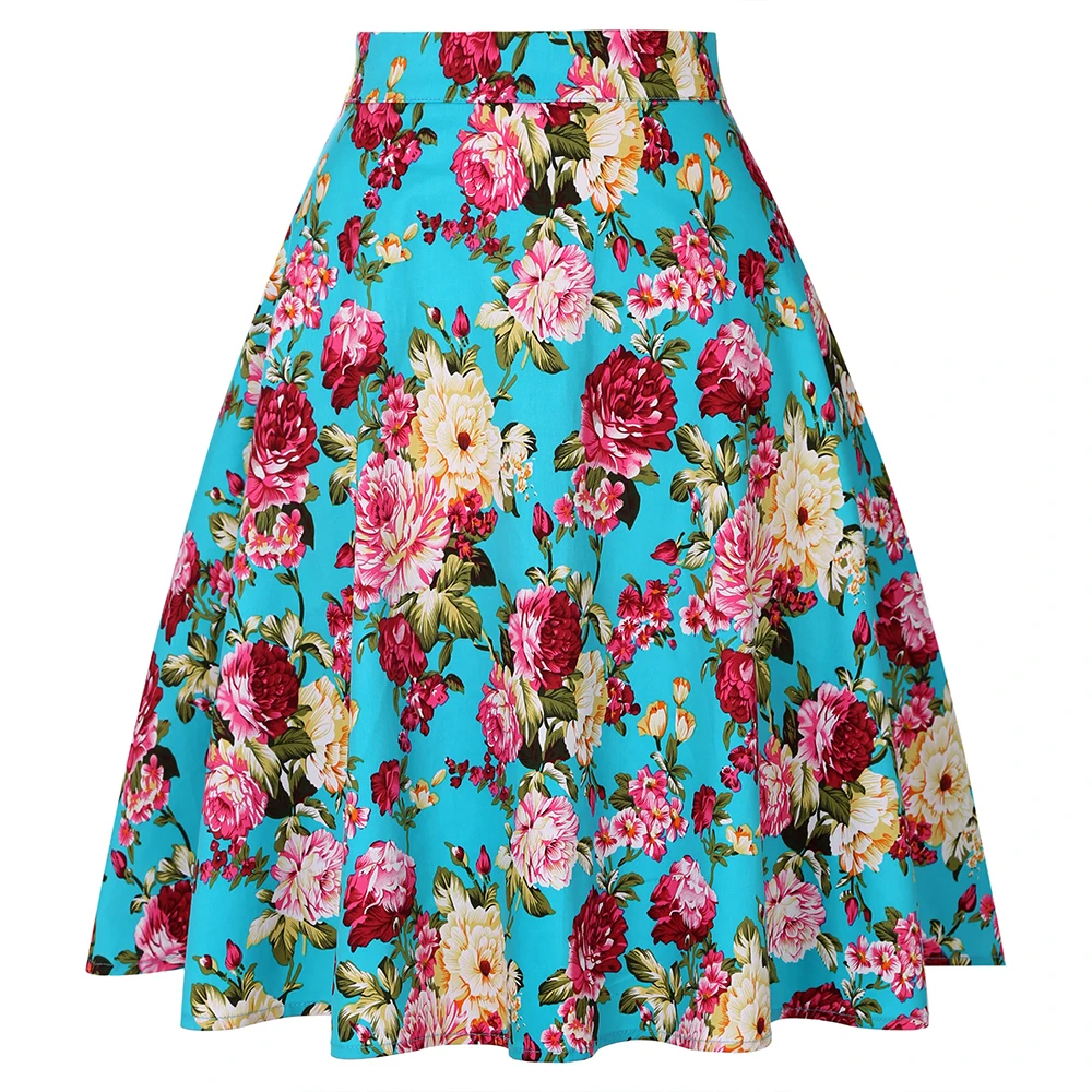 Plus Size 50s Swing Women Skirt A Line High Waist Cotton Ladies Rockabilly School Casual Vintage Skirts Womens Falda Mujer