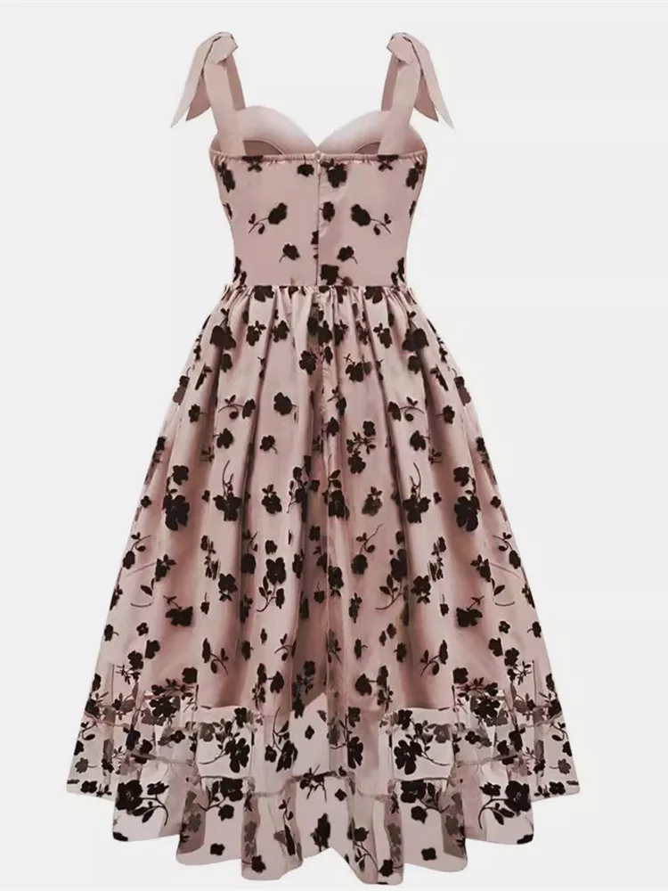 2024 Summer Mesh Vintage Party Women's Dress Bow Sleeveless Spaghetti Straps Ball Gown Swing Tunic Short Cocktail Dresses