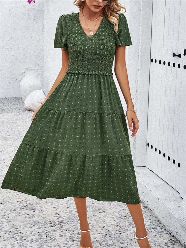 2024 Summer Solid Casual A Line Runway Dress for Women Elegent V Neck Vintage Style Female Office Swing Sundress