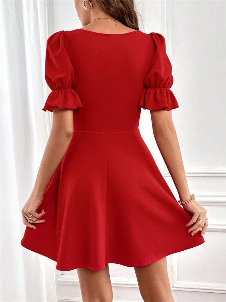 2024 Summer Vintage Red Party Dress for Women Short Sleeve Casual 50s 60s A Line Runway Party Flare Dresses