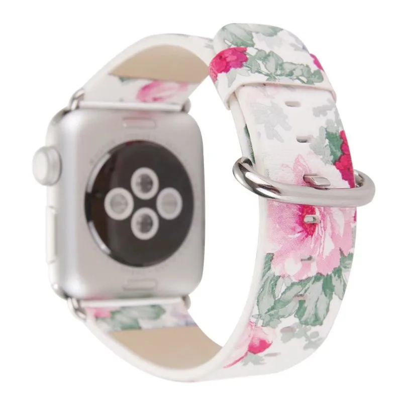 Apple Watch band Strap Chinese Ink Painting Flower Vegan Leather Wristband for iWatch