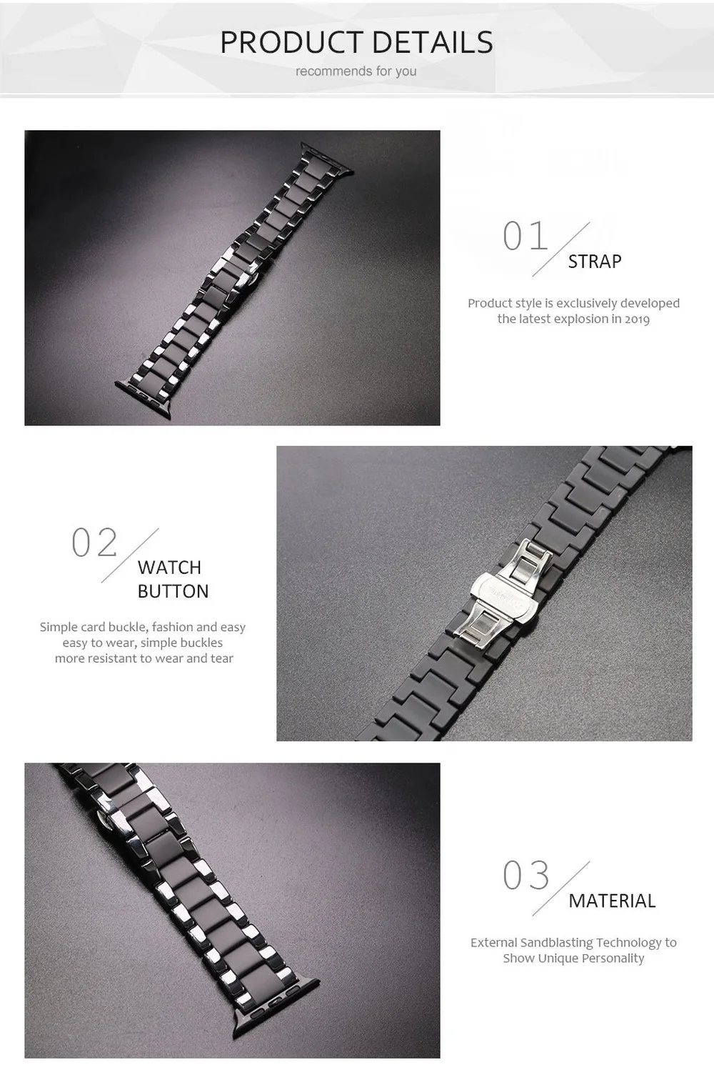 Apple Watch Band for iWatch series 4 5 2 1 3 38mm 40 mm ceramic strap black color Loop Bracelet for iwatch 4 5 42mm 44mm