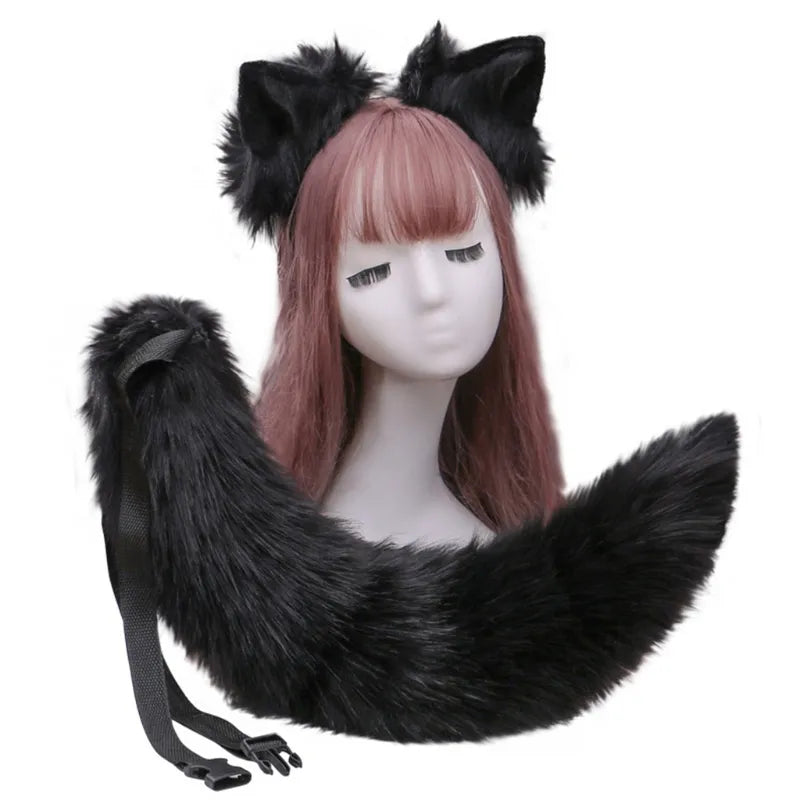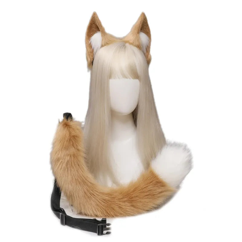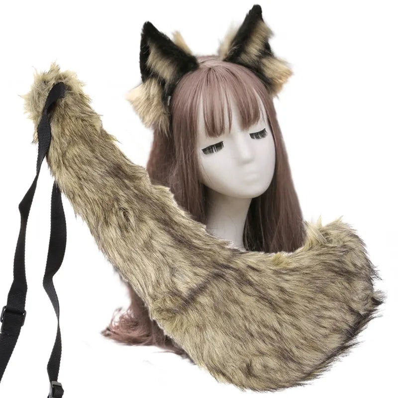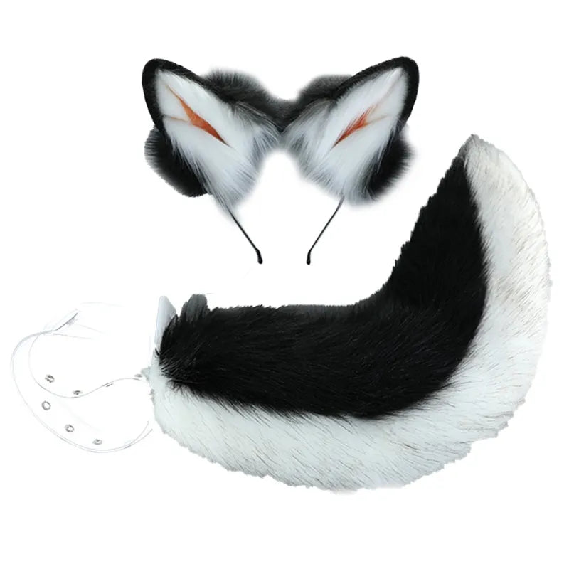 Creative Simulation Animal Cosplay Props Husky Dog Ears Headband Plush Tail Set Hair Accessories for Halloween Christmas