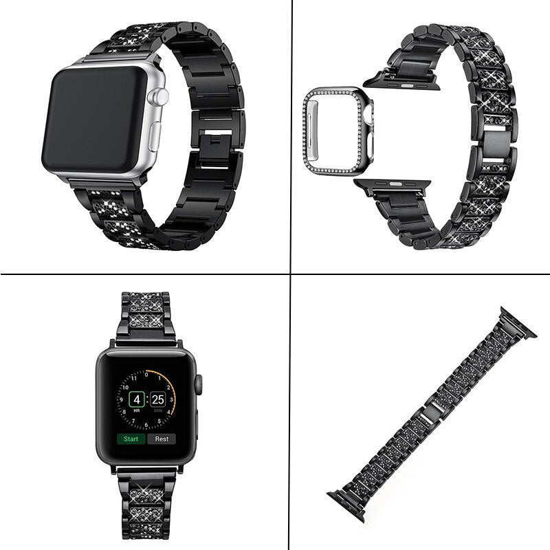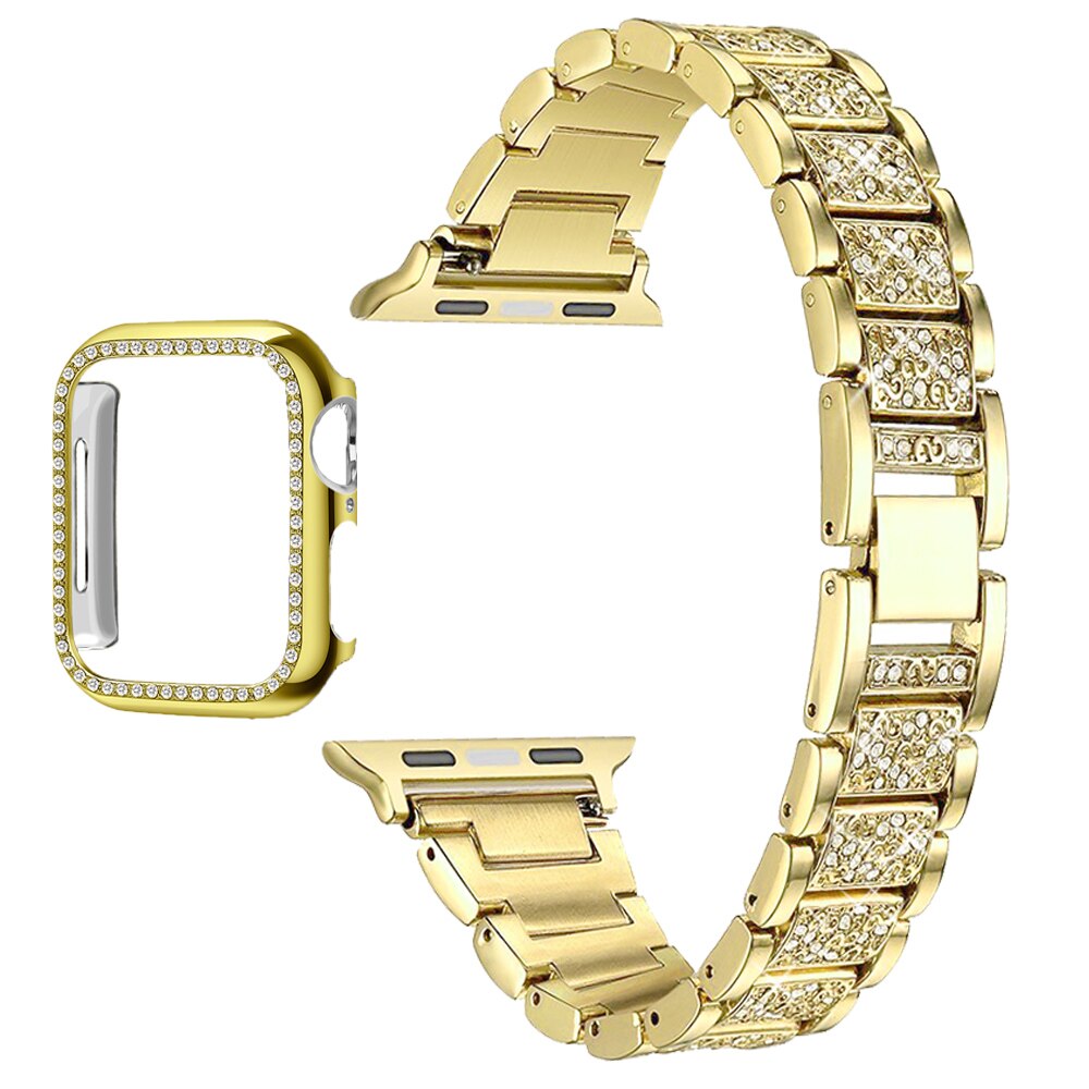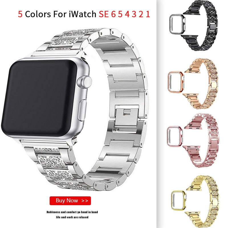 Diamond stainless steel strap With cover for apple watch strap 6 SE 5 4 44mm 40mm iWatch Bands 6 3 38mm 42mm Bracelet watchband