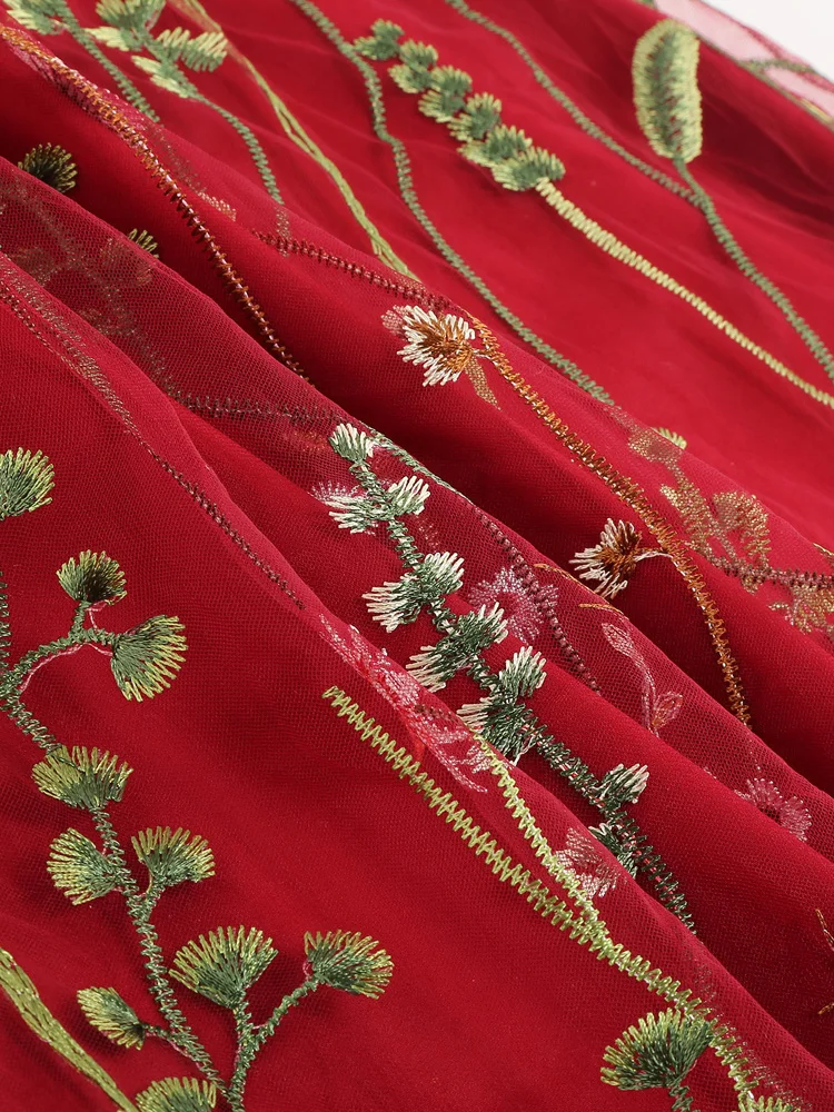 Floral Mesh Embroidery Evening Party Elegant Robe Women Vintage Midi Dress Keyhole Back Sleeveless Ladies Swing Dresses