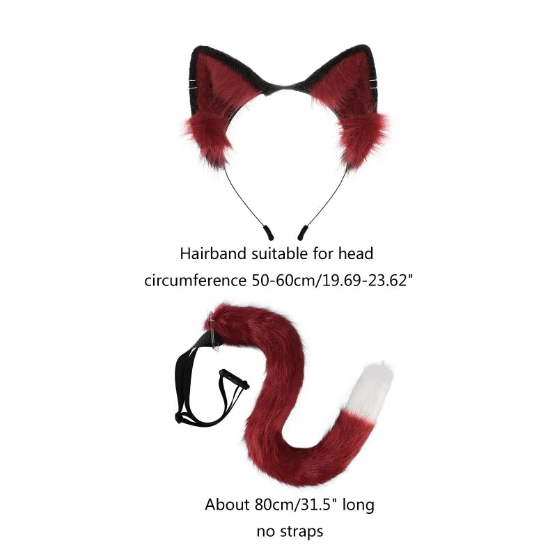 Fox Cat Ears Headband and Faux Fur Tail for Halloween Cosplay Party Costume Accessories Cat Ears Tail Set for Adults