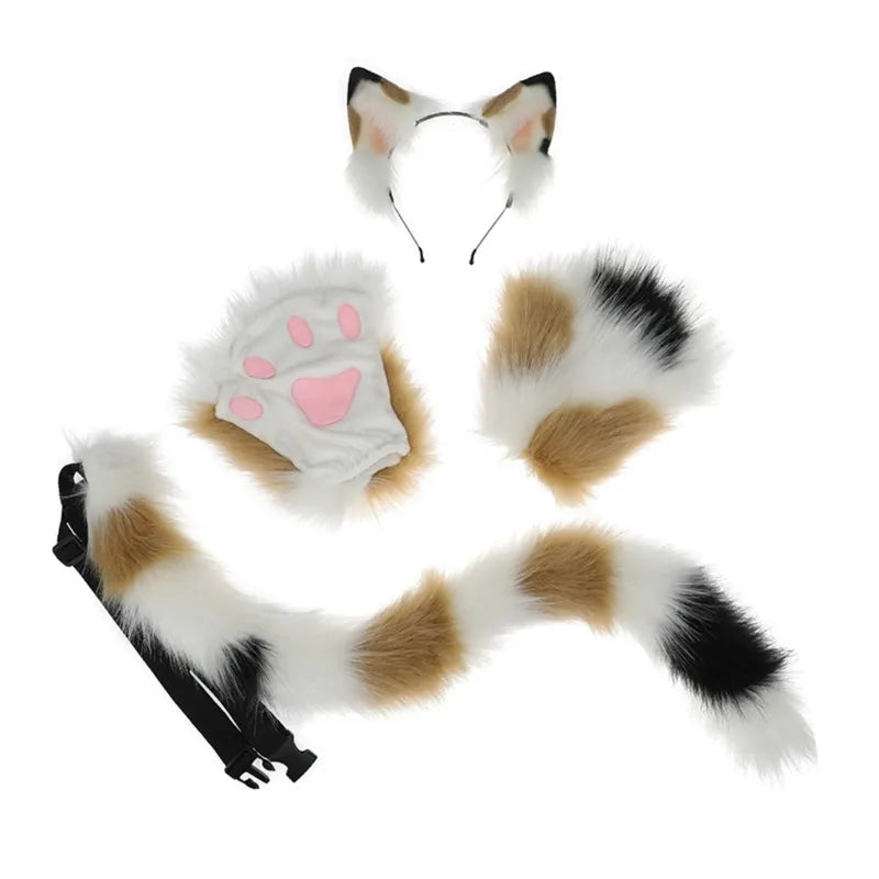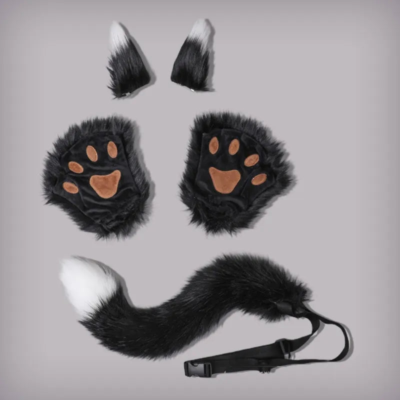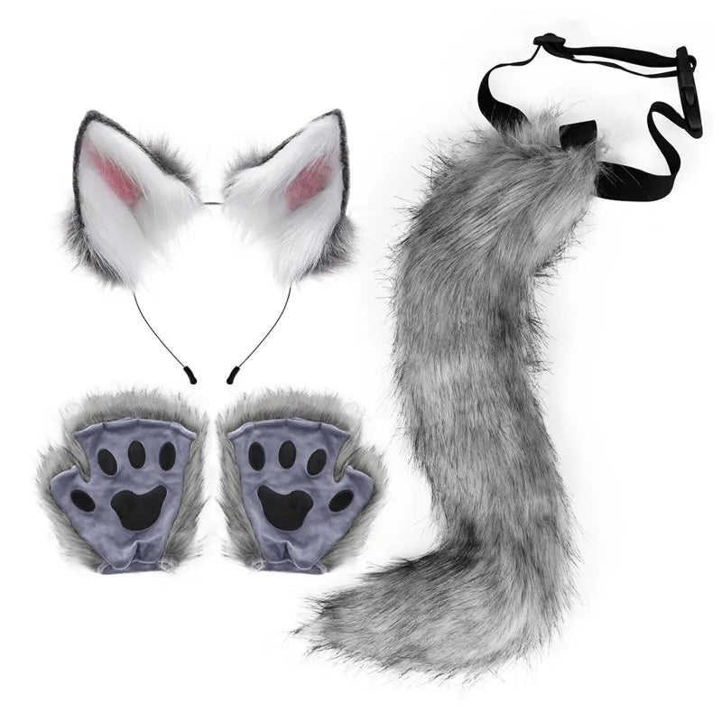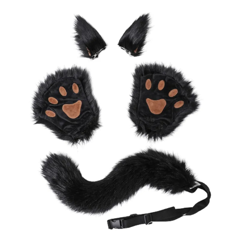 Fox Costume Set Fox Ears Tail Paw Gloves Animal Fancy Costume Kit Accessories for Adults Halloween Cosplay Costumes
