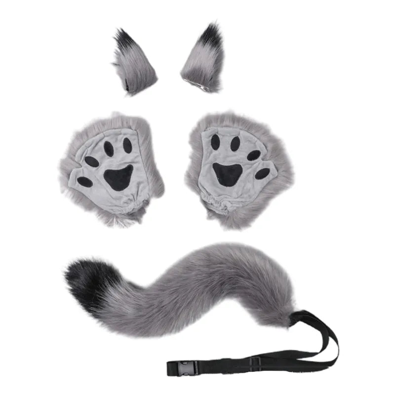 - Easy to wear - The wolf cosplay set is lightweight, soft, comfortable, fine crafted, and simpe to wear, which includes 1 pair of ear hairclips, 1 pair of half finger gloves, and 1 fluffy tail.