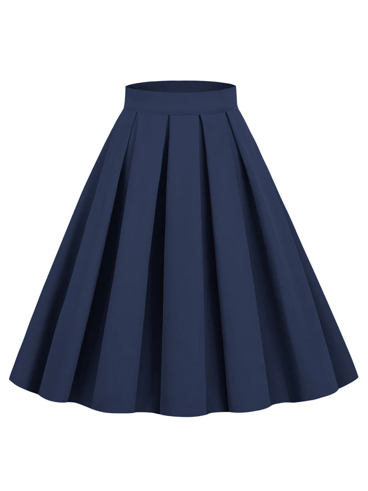 Ginger Solid Vintage 50s Style Pleated Midi Skirts for Women Elegant Clothes Female Swing Skirt