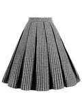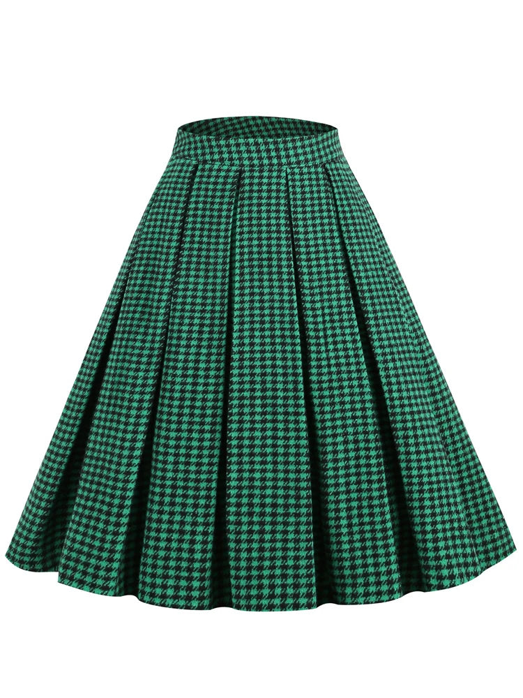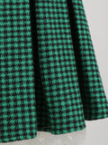 Green Houndstooth Plaid Vintage Pleated Skirts for Women Autumn Winter Elegant Knee Length Rockabilly Skirt