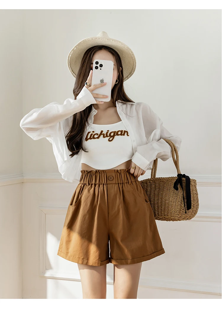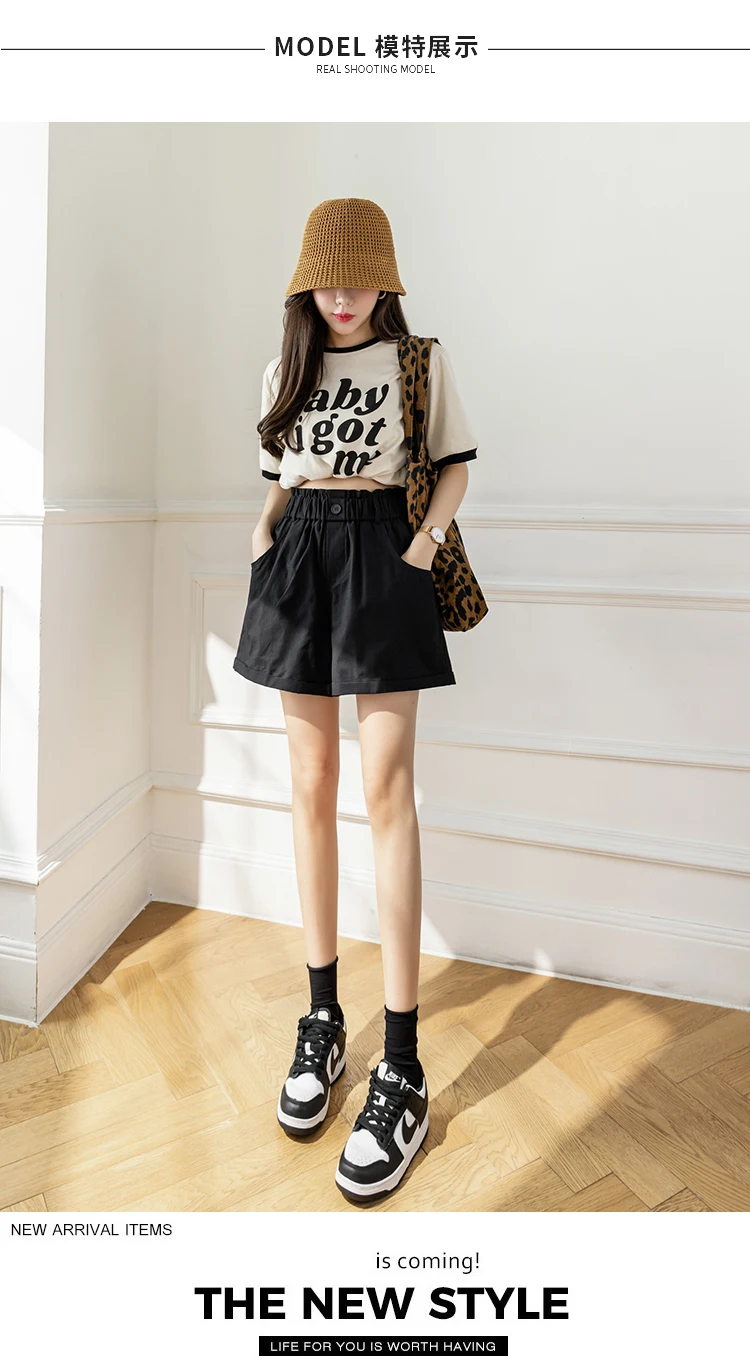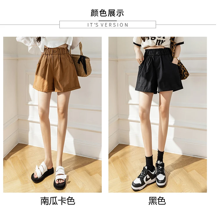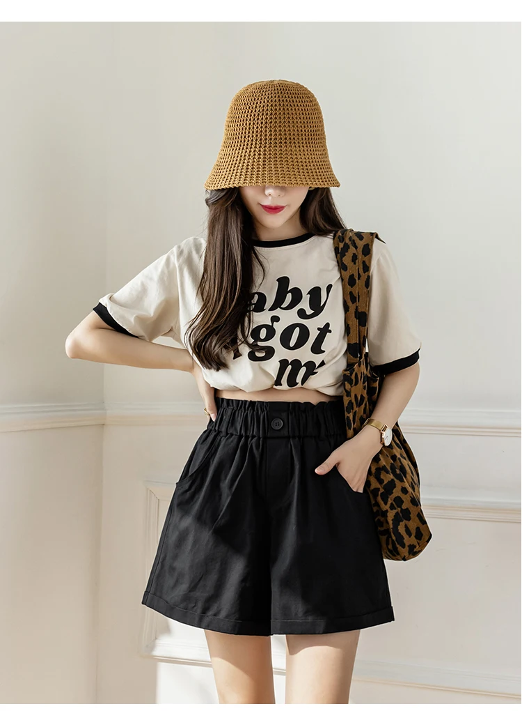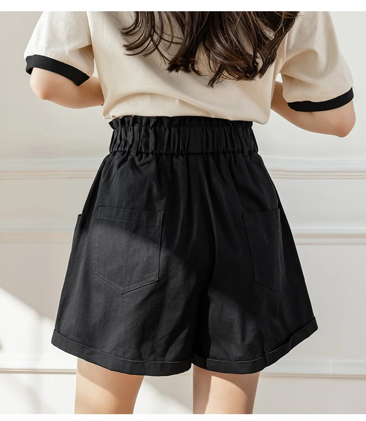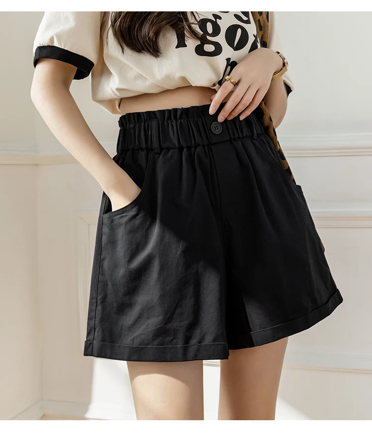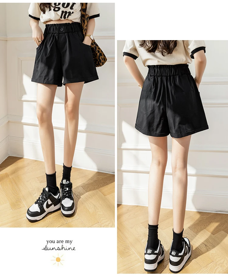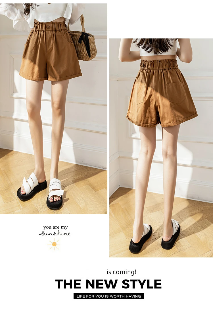 High Waist Casual Women Summer Fashion Elastic Waist Solid Color Comfortable Cotton Shorts