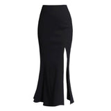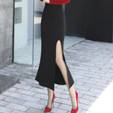 Title: Elastic High Waist Women Long Skirt Vintage Pencil Skirt Bodycon Sexy Split Skirts Female Black Long Slim Fit Mermaid Skirts
