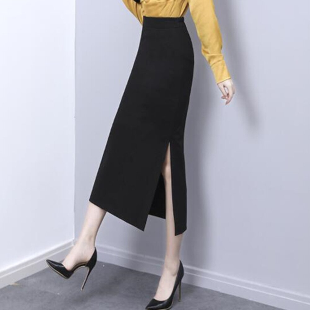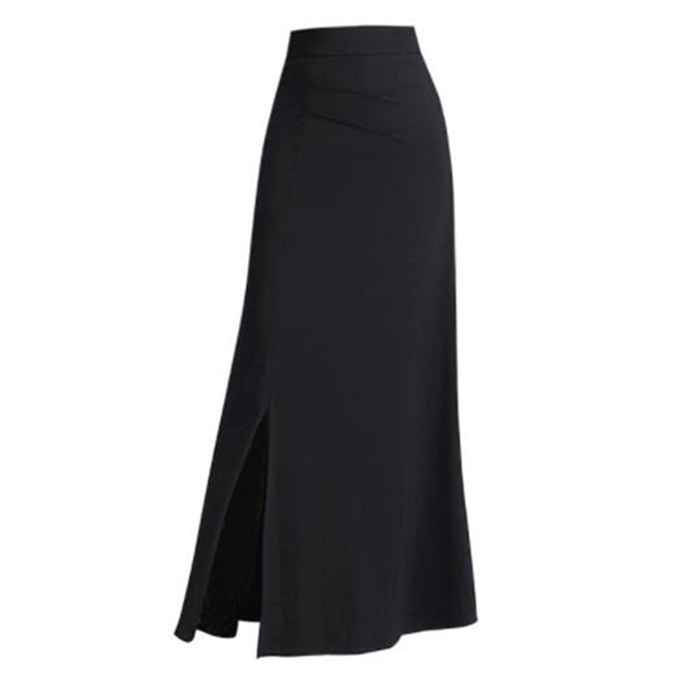 High Waist Solid Long Korean Office Wear Women Ladies Black Maxi Skirt Bottoms