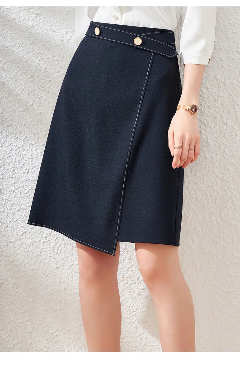 Irregular High Waist A-line Women Simple Slim Office Lady One Step Skirts