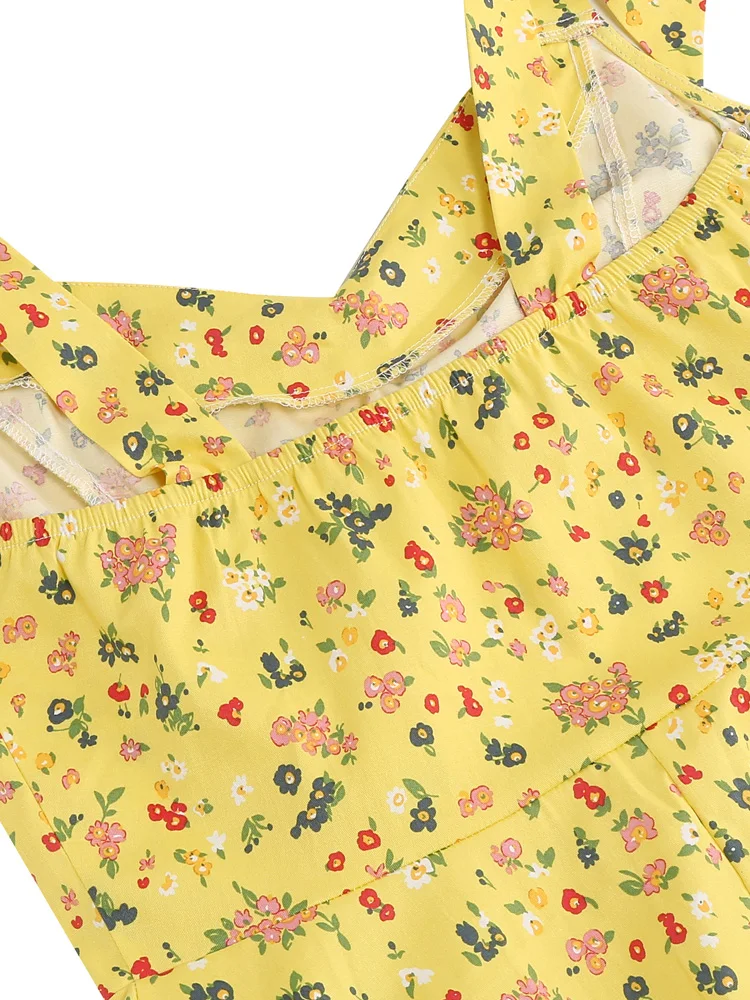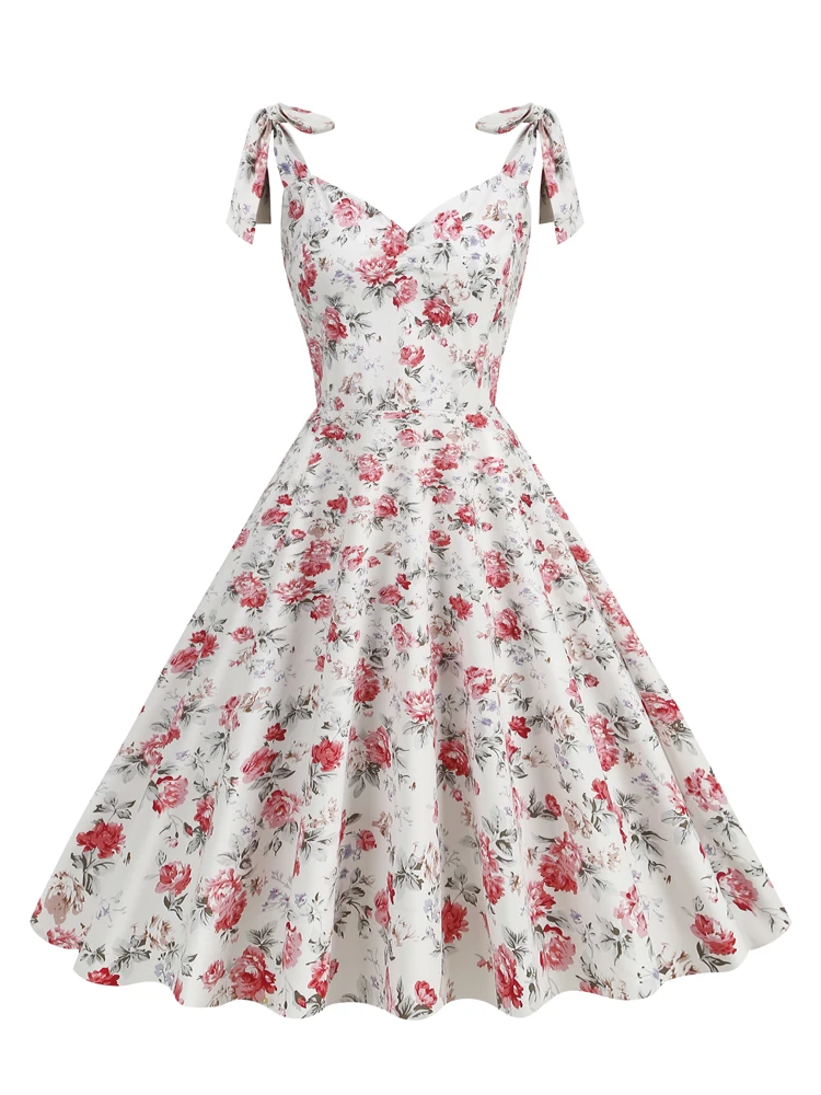 Knot Strap V-Neck Floral Cotton Women Vintage Dress Party Evening Elegant Luxury Celebrity Summer Ladies Dresses