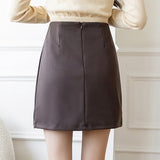 Ladies Elegant A-line Mini Skirts Korean Style Vintage Woolen High Waist Women Casual Pleated Skirt