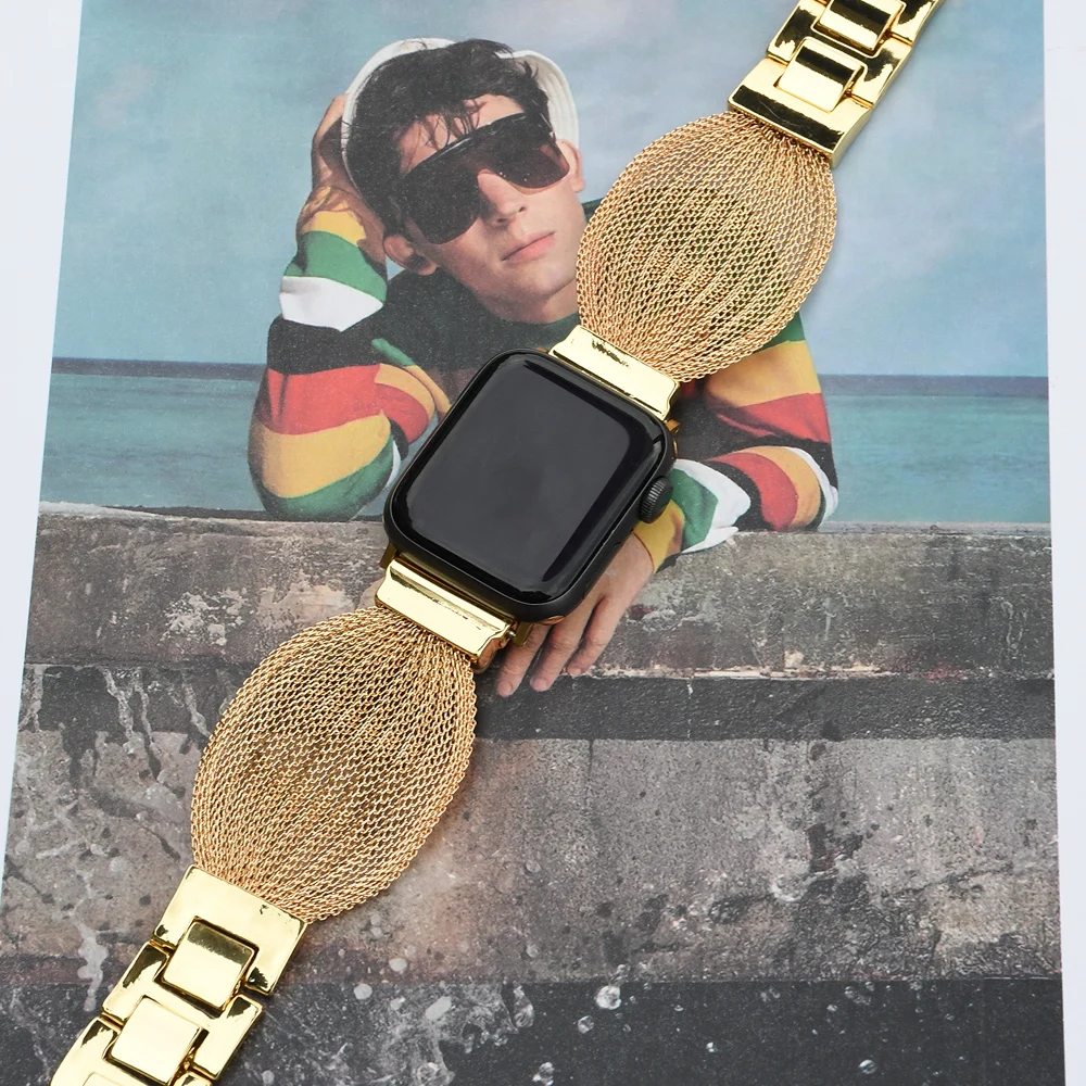 Metal Mesh Stainless Steel Strap for Apple Watch 40mm 44mm 41mm 45mm Women bracelet Watch Band for iwatch series 7 6 SE 5 4 3 2