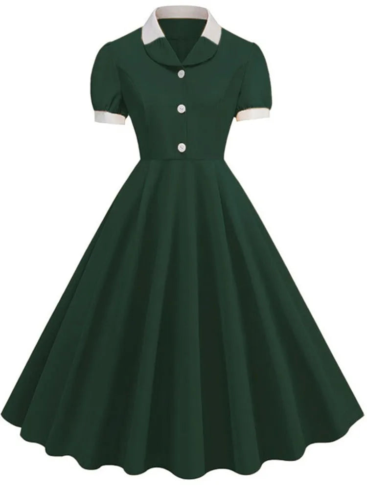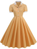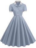 Patchwork V Neck Vintage Casual Summer Short Cocktail Dress Elegent Retro 50s Solid Runway Pinup A Line Flare Tea Evening Dress