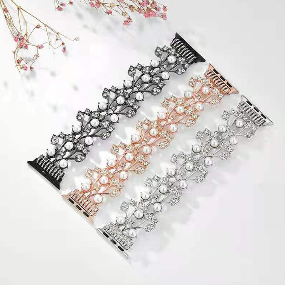 Pearl Diamond Strap for Apple Watch Band 6 44mm 40mm 38mm 42mm Women Jewelry Metal Belt for iWatch Bands Serie SE 5 4 3 Bracelet