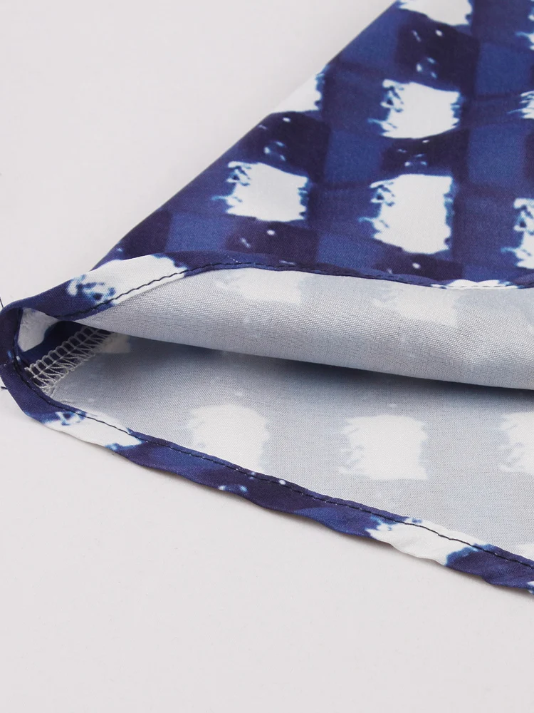 Spaghetti Strap V-Neck Plaid Blue Summer Dress Women Shirred Back Elegant Vacation Beach Vintage Long Dresses