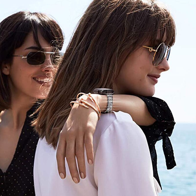 Sparkly upgrade- Made to last from high-quality polished black-plated metals, 88 hand-set brilliant-cut clear cubic zirconia stones sparkle side-by-side, catches the light with your every move. Boldly wear your charms- Casting glorious light on your wrist, be your sparkliest yet as you wear this striking apple watch band. You don't just wear a band- It shines just as bright! It adds sparkling accents to your apple watch and easy to mix and match with your existing bracelet collection, wear it solo or stacked with other bracelets as part of your own arm party. Adjustable chain closure- The delicate chain feature five adjustable clasps for easy opening and closing. Simply pry the clasps apart with your fingernail to adjust a perfect fit. For 5.1-7.8 inch wrists, easily adjustable for tiny wrist.