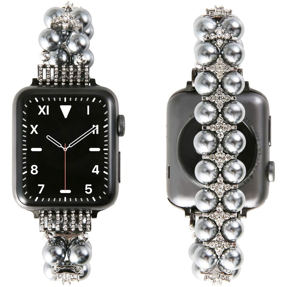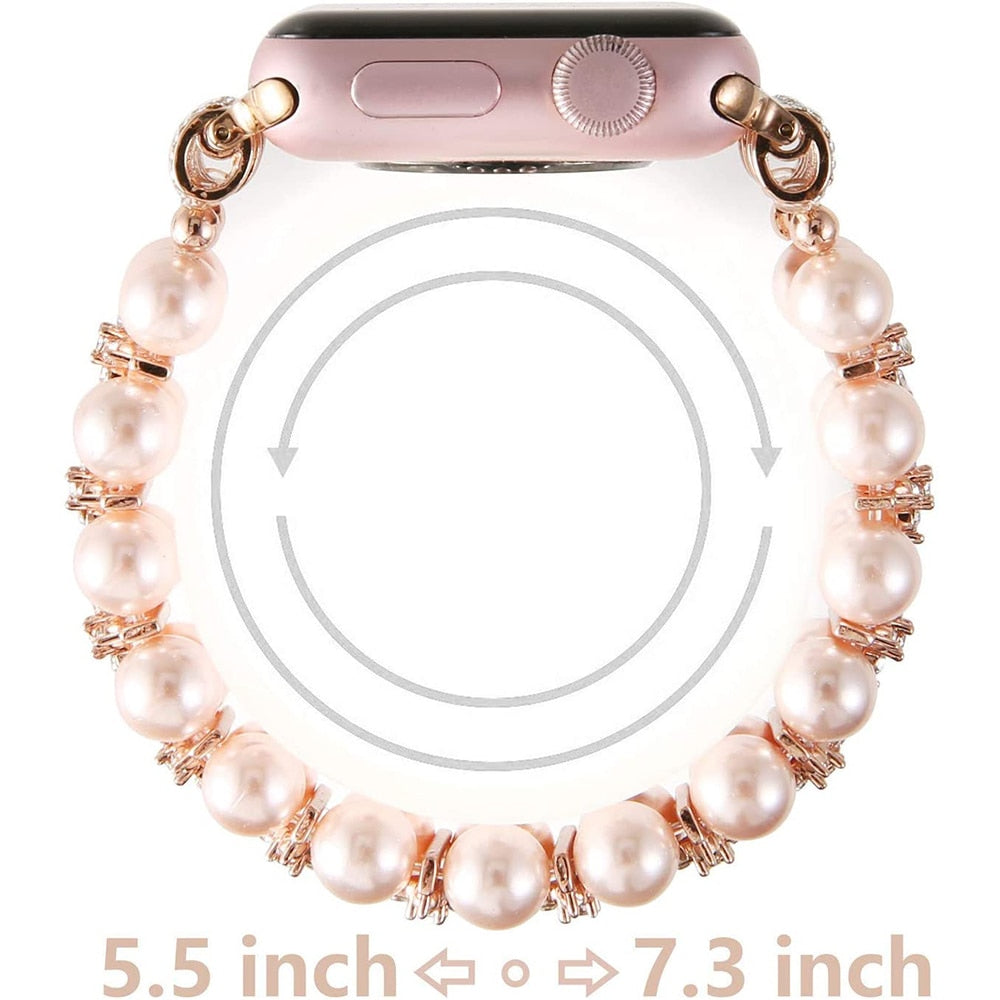 【Diamond & Pearl Bracelet Design】Bling Diamond & Pearl bracelet compatible with apple watch band perfect combination, It makes your watch more like a fashion colorful jewelry bracelet than a normal watch. Absolutely look like a luxury jewelry, make you eye catching, add much beauty and elegance to your watch. pearls make this bracelet beautiful and romantic all at once. 【Size】Compatible with apple iWatch bands 38mm / 40mm 42mm/44mm: 5.5—7.3 inch (140-185mm) wrist. Each strap is handmade,This watch band stretches naturally through the elastic, it will be comfortable around your wrist to measure heart rate, monitor activity tracking well, even sleep data. 【Perfect For Gifting】Compatible with Apple watch pearl women bracelet is a good choice as an exquisite and luxury gift for any occasion: Party, Prom, Valentine’s day , Wedding day, Graduation, Thanksgiving Day, Wedding Anniversary, Mother's Day, Birthday, Christmas etc. Makes for a perfect bracelet for yourself or for the women you value and love. 【Easy installation】No tools needed, no buckle needed, easily to take on / off. Please note that the way to wear, can not be Winding, pay attention to the metal pipe and the friction between the lines of friction. 【Compatible】For Apple Watch models including White Apple watch band Series 6 (2020 - 40mm), Series 5 (2019 - 40mm), Series 4 (2018 - 40mm), Series 3 (2017 - 38mm), Series 2 (2016 - 38mm), and Series 1 (2015 - 38mm).