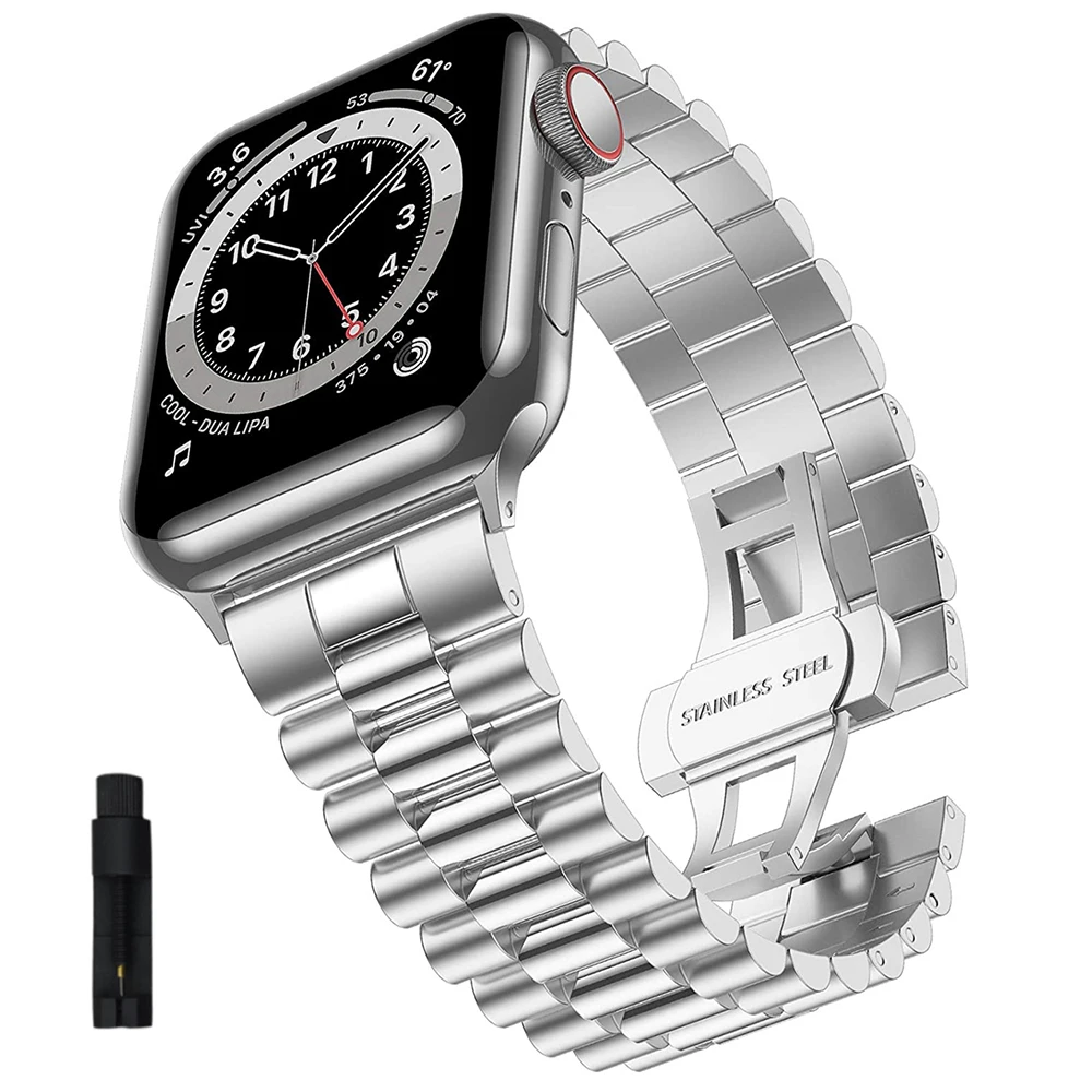 Stainless Steel Strap for Apple Watch 7 Band 41mm 45mm Bracelet Wristband for iwatch 7 6 5 3 40mm 44mm Luxurious Belt Watchbands*Premium stainless steel metal replacement band is compatible with Apple Watch 45mm 44mm 42mm 41mm 40mm 38mm Series 7 Series SE Series 6 Series 5 (2019) Series 4 and 42mm Series 3 Series 2 Series 1