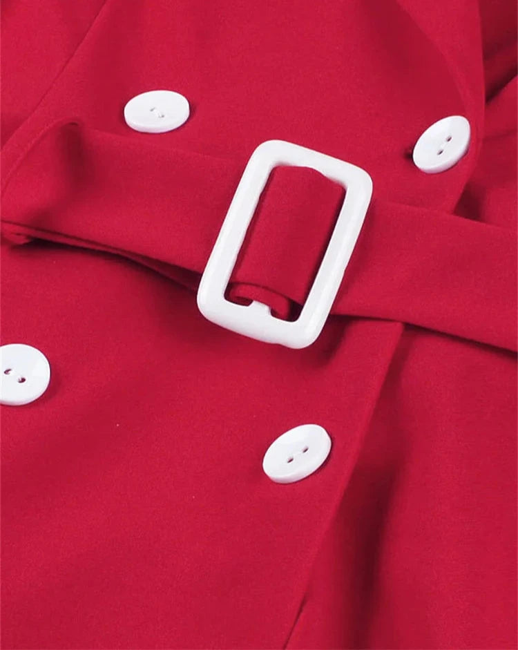 Suit Collar Short Midi Runway Summer Dress Vintage Red 50s A Line Flare Tea Evening Dress with Belt High Waist OL Office Dress