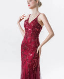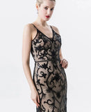 Vintage Floral Sequin Embroidered Mesh Maxi Dresses for Women Spaghetti Strap V-Neck Sexy Evening Prom Party Long Dress