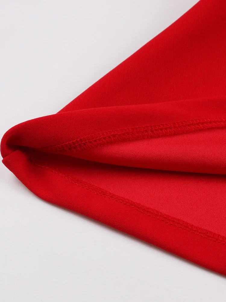 Vintage Retro Women Red Solid Dress Party Evening Elegant V-Neck Button Front Short Sleeve Summer Belted Swing Dress