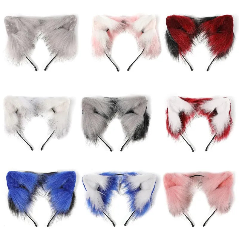 Women Animal Ears Headdress Plush Furry Ears Headband Lolita Headpiece Halloween Christmas Handmade Cosplay Accessories
