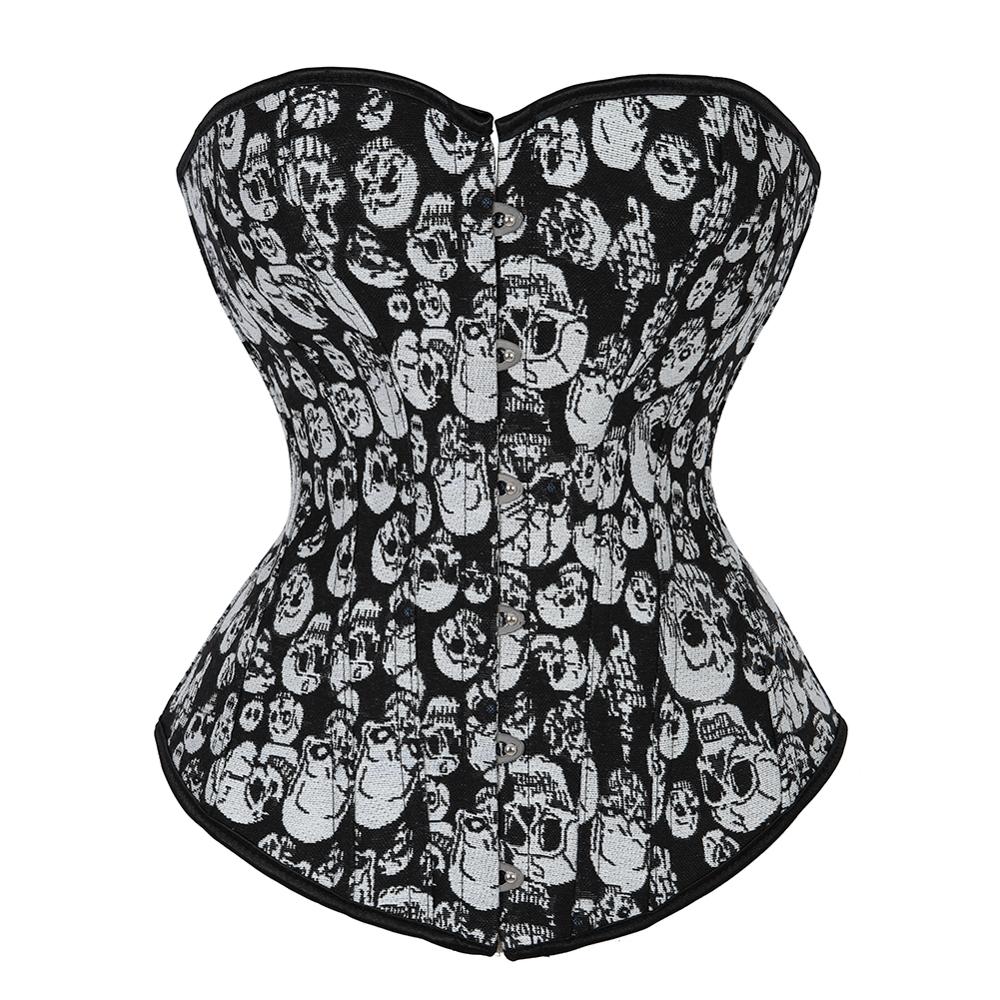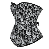 Women Gothic Sexy Skull Print Corset Bustier Showgirl Waist Cincher Slimming Overbust Corset Lingerie Top Plus Size S-2XL