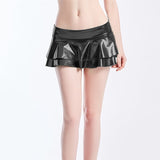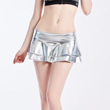 Women Shiny Metallic Pleated Mini Ruffle A-line Skirt Pole Dance Mini Laser Wet Look Skirt Jazz Hip Hop Clubwear