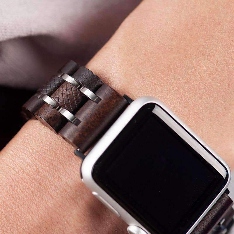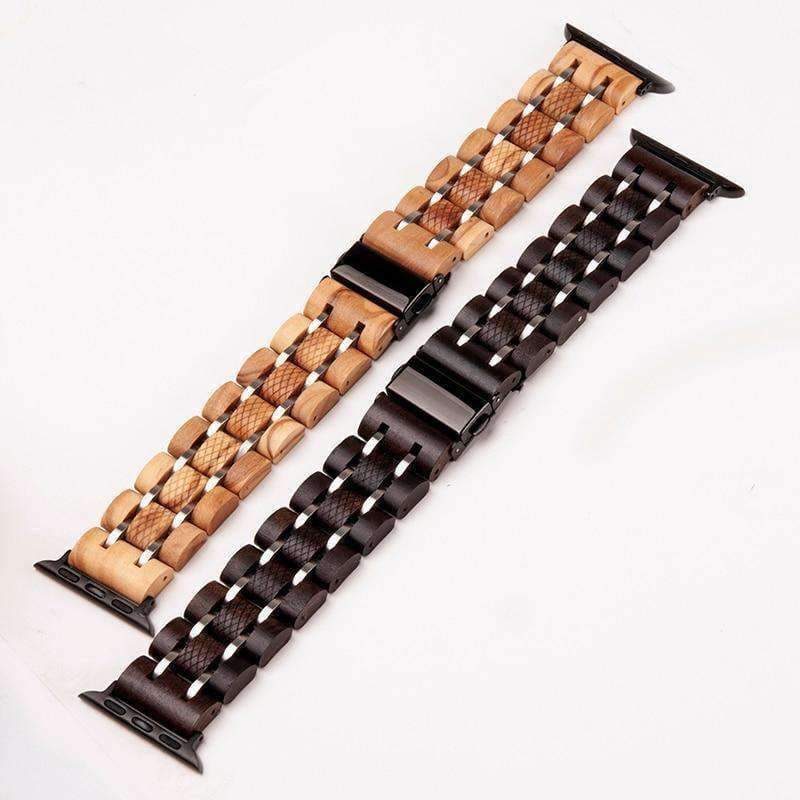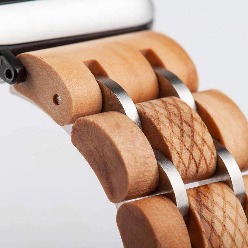 Apple watch Wood Watchband Stainless Steel iWatch Band Wrist Bracelet Strap
